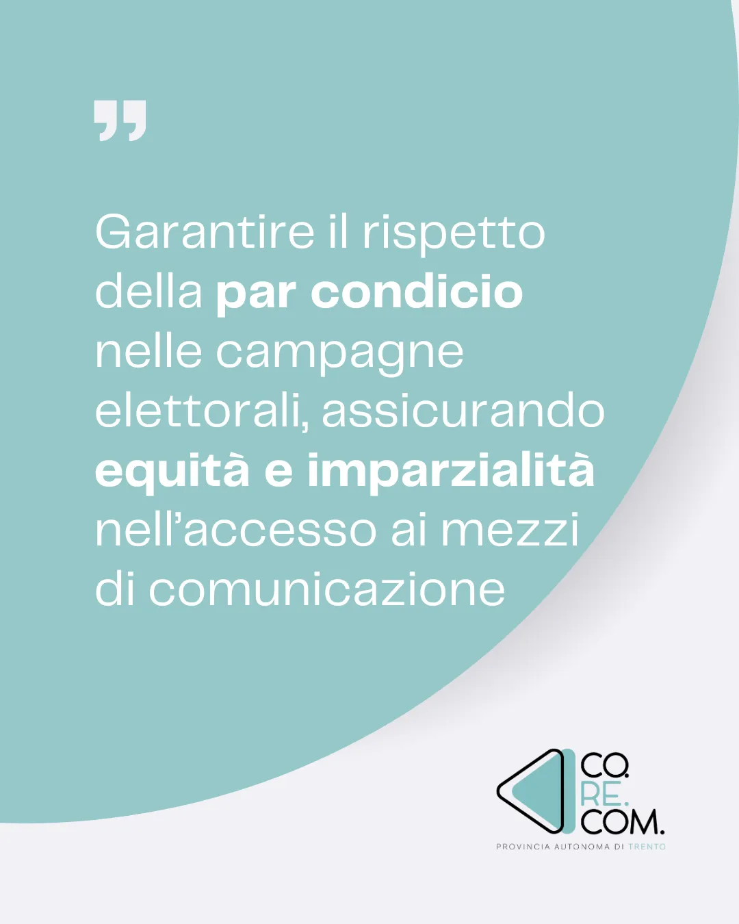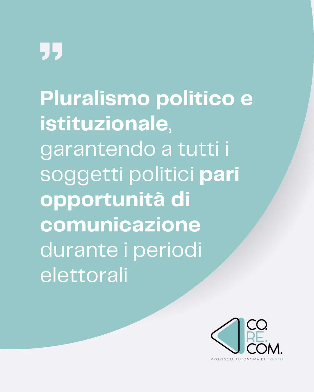 L'attività del Corecom della Provincia autonoma di Trento in materia di comunicazione politica si estende sia ai periodi elettorali o referendari, sia ai periodi non elettorali, con lo scopo di garantire l'equità dell'informazione e il pluralismo del sistema mediatico locale.